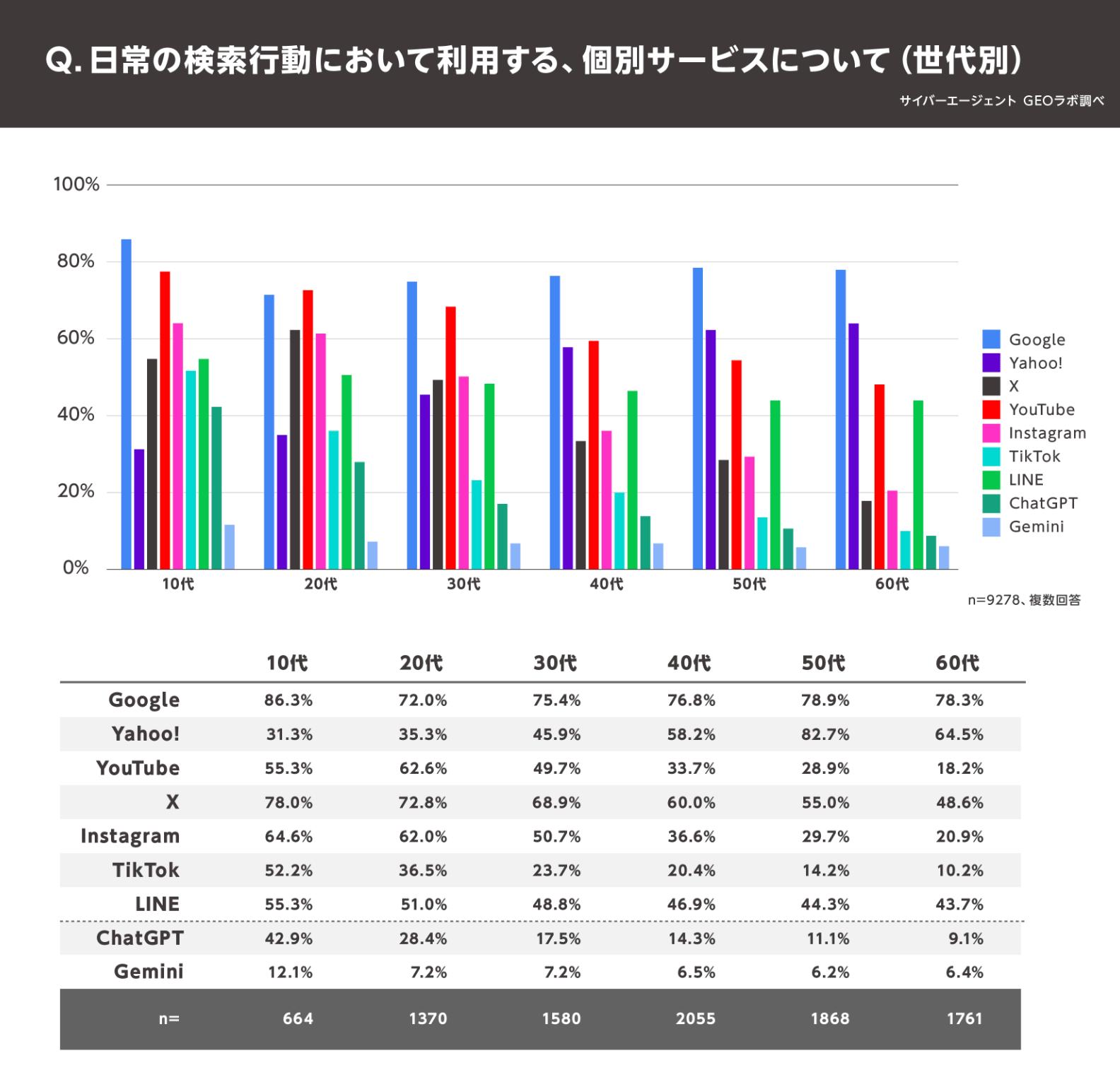 > 10代では、ChatGPT(42.9%)がYahoo! JAPAN(31.7%)を上回る利用率に