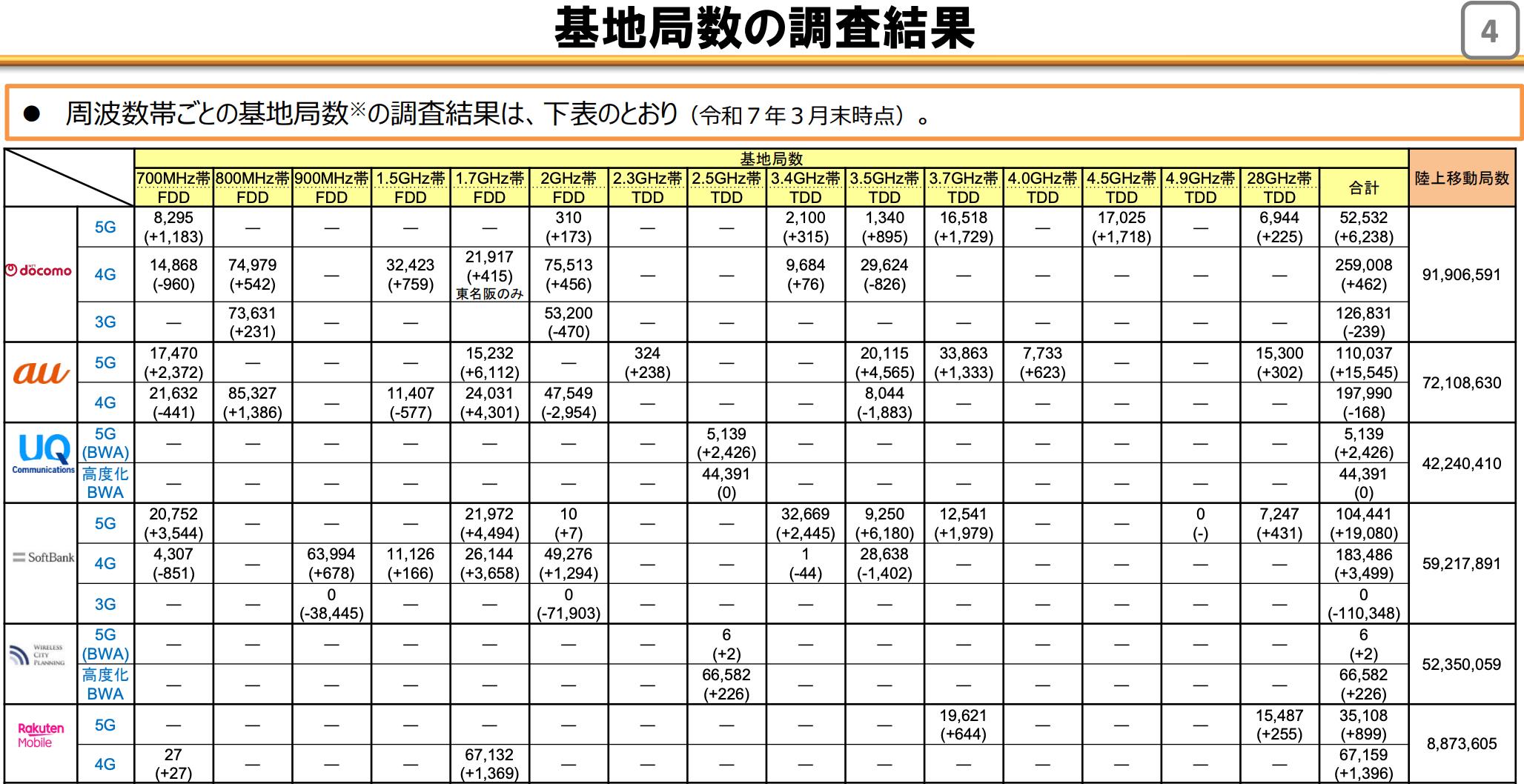 2023年3月末時点の基地局のデータです