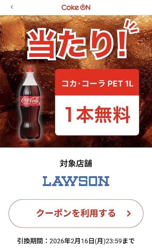 > 「表示されている方限定コカコーラ1L 1本無料 14万名に当たる!」