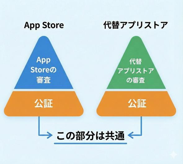 iOSの場合、外部アプリストアで配信する場合でも、セキュリティの観点からAppleの「公証」が必要で、これに5%の手数料が掛かるとのこと。この記事を読んで、Epic Gamesが主張している内容がようやく理解出来ました。