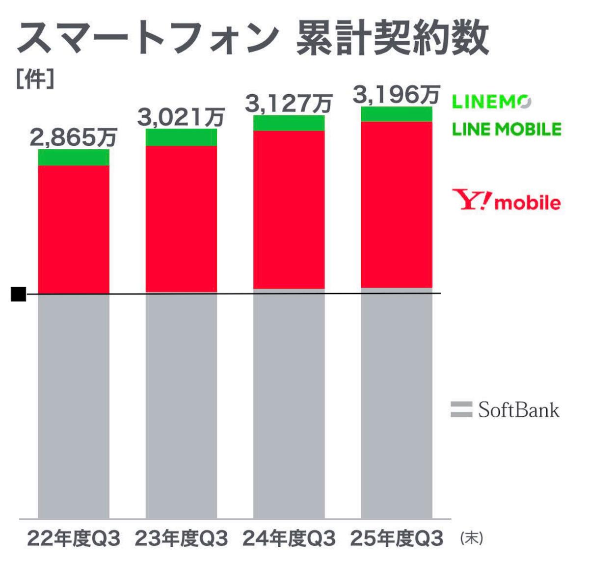 ソフトバンクユーザの多くはワイモバイルまたはLINEMOに乗り換えています。