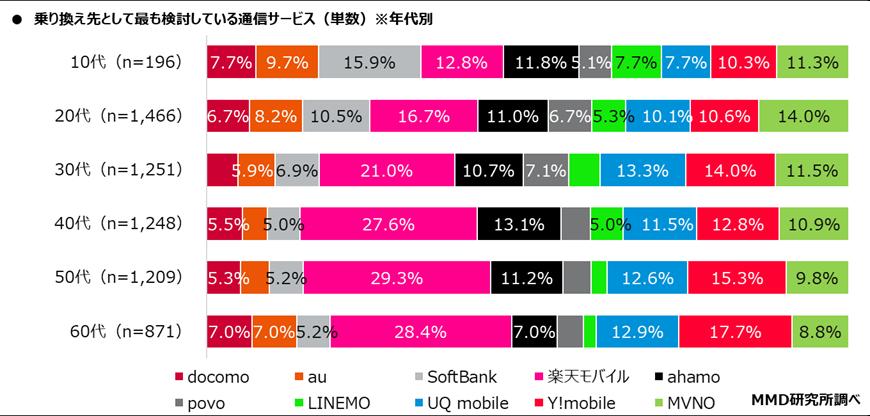 楽天モバイルのメインユーザーが増加、満足度はpovoが1位 MMDが調査