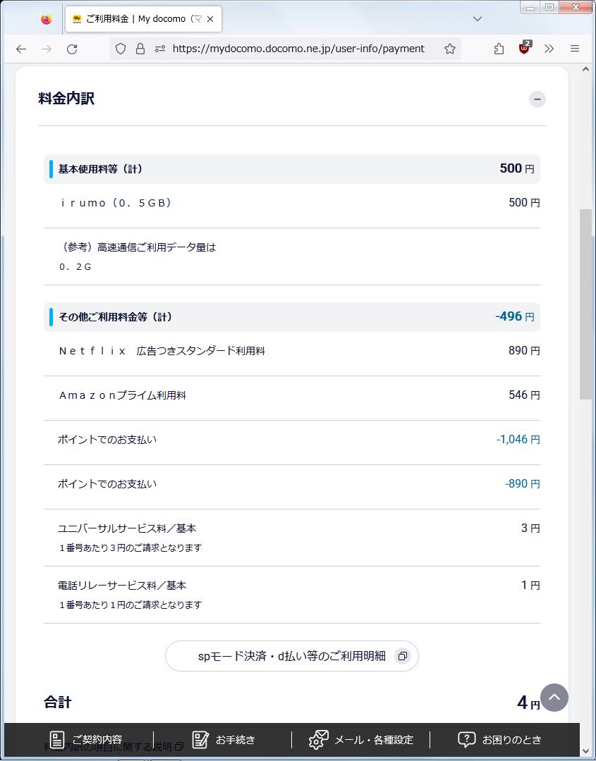 irumo終了前にキャンペーンで乗換え20000ポイント貰ったので、AmazonPrime会員費ドコモ契約20%ポイント付与とd曜日のキャンペーンでAmazon利用、ネットフィリックスの広告付きスタンダート15%ポイント還元を550円プランで利用していますが、とりあえずは既存契約でのポイント還元改悪までは利用してみようかと思います、ポイント払いの場合はAmazonPrime会員費が9%引き546円請求のようですので120ポイント毎月付与されて月額実質426円で使えるようです。
