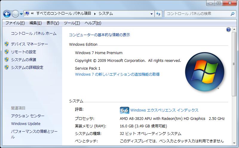 うちではまだサポートが切れていますWindows 7 Home Premiumを使っています。