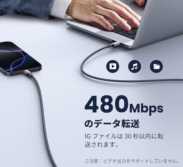 480Mbpsのデータ転送って書いてあるから使えると思ったら、実際に繋げてみたらデータ通信できない😵