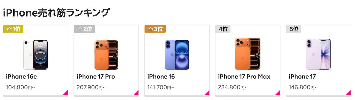 楽天モバイルではiPhone 16eが一番売れています。次にiPhone 16、iPhone 16 Proが続きます。