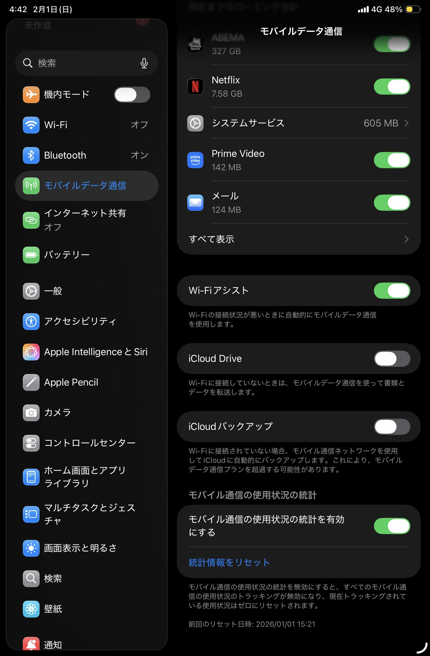 先月までは、45GB越えで高速が1ヶ月間は使えていたのですが。。。