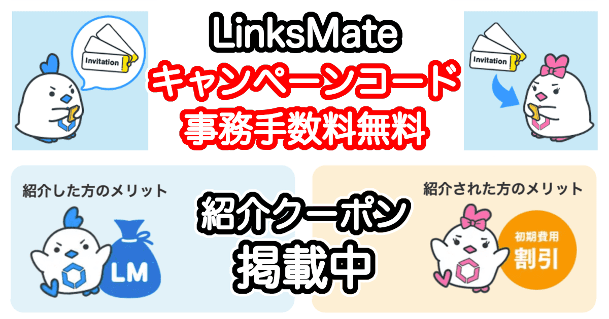 LinksMate(リンクスメイト)のキャンペーンコードで事務手数料無料!紹介クーポン掲載中