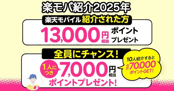 楽天モバイルを紹介経由で契約すると最大13,000ポイントもらえます。初めて契約する人限定特典です。(1人1回まで) 楽天モバイルを契約したら、家族や知人、知らない人をブログやSNS経由で紹介すれば1人紹介するごとに10 … 続きを読む 楽天モバイルの紹介ならここ!紹介掲示板2025年【家族/友達/他人OK】