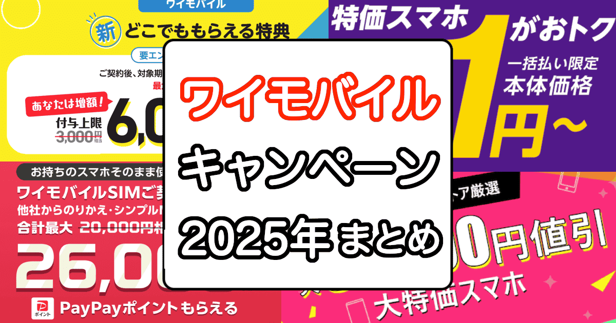 ワイモバイルの2025年11月最新のキャンペーン情報をまとめて紹介します。 ワイモバはオンラインストアで申し込むと、端末セットは新規でも乗り換えでも最大21,600円割引、SIMまたはeSIMのみはPayPay最大26, … 続きを読む 【2025年11月】ワイモバイルのキャンペーンまとめ!新規と乗り換え特典の掲示板