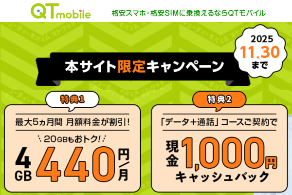 QTモバイルのキャンペーンとキャッシュバック情報 [2025年] エントリーコードとクーポンコード