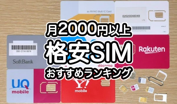 スマホをよく使う人は月2000円〜3000円台の格安SIMがおすすめです。 月2000円以上の格安SIMならギガをたくさん使えます。家にWiFiなどのインターネット環境がない場合や、外でもたくさんスマホを使う人におすすめ … 続きを読む 月2000円〜3000円台の格安SIMおすすめランキング【スマホ格安プランの掲示板】