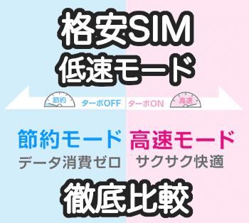 格安SIMの低速モードの最大速度/切り替え/使い放題の比較