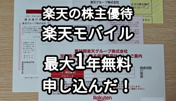楽天モバイルが1年無料で使える楽天の株主優待が届いたので、早速申し込んで使っています! 楽天の株主になれば月30GBまで無料で1年使えちゃいます。かなりお得です。 ※2025年12月26日時点で楽天株の保有が必要で、20 … 続きを読む 楽天の株主優待で楽天モバイル1年無料を申し込んだ!povoと併用が最適【優待SIMの口コミ掲示板】