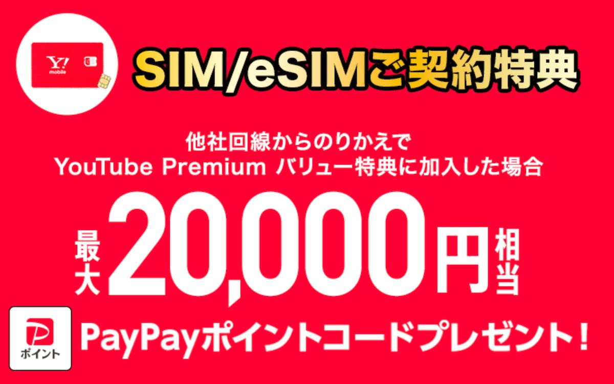 ワイモバイルのSIM/eSIMの申し込むでもらえるPayPayポイントが期間限定で増額です。