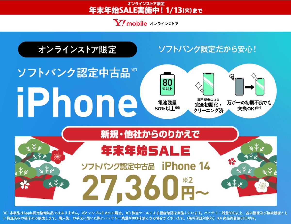 2026年1月13日14時59分までワイモバイルで年末年始SALE開始です。(2025年12月19日開始)